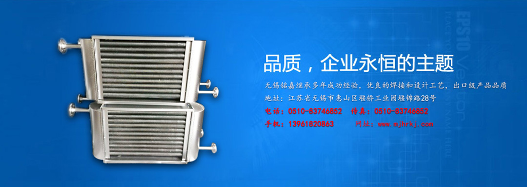 無錫銘嘉換熱科技有限公司是生產(chǎn)散熱器的專業(yè)工廠。 產(chǎn)品有:高溫水或蒸汽散熱器高溫導(dǎo)熱油散熱器表面空氣冷卻器油冷卻器鋁制串片式暖氣片空氣冷卻器翅片管換熱器